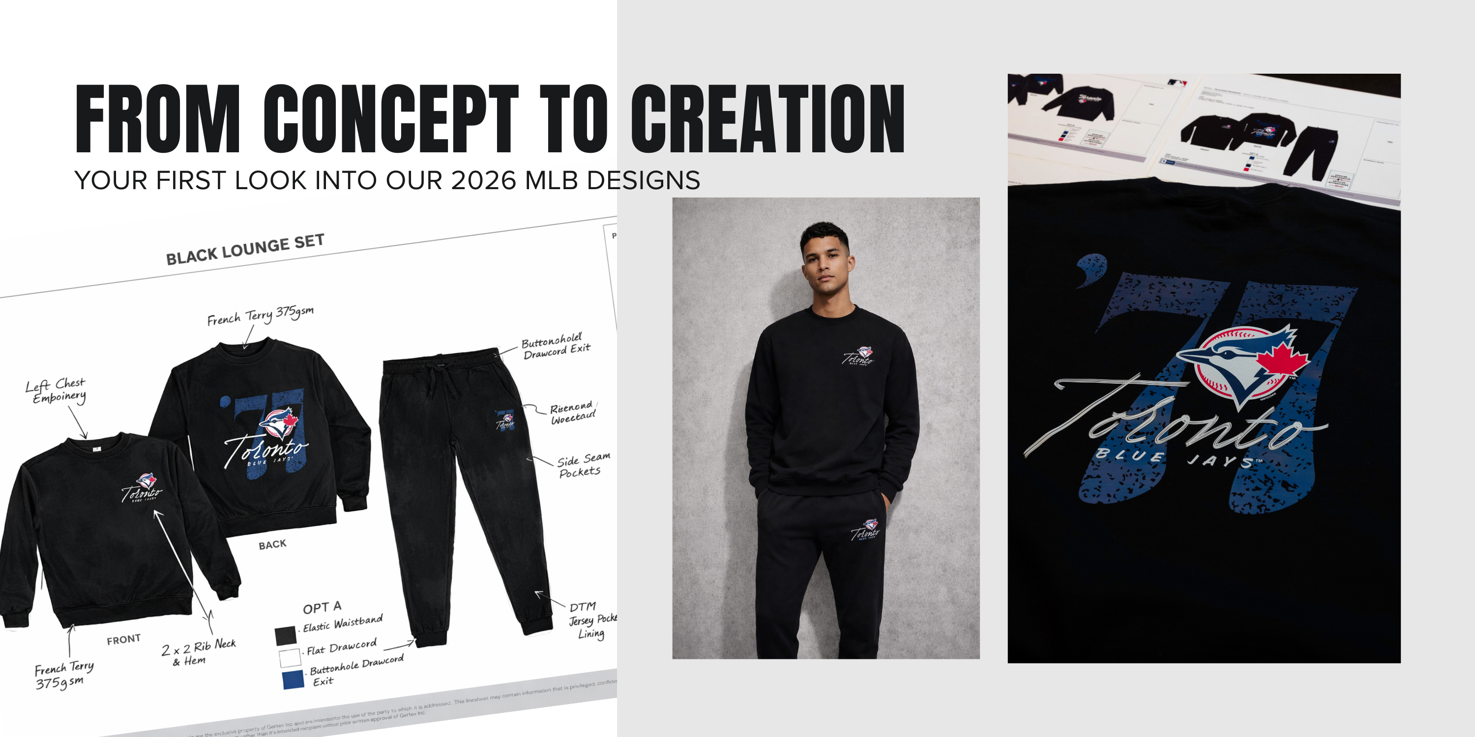 Gertex MLB Toronto Blue Jays Adult Unisex Black French Terry Lounge Set with Est. 1977 Design